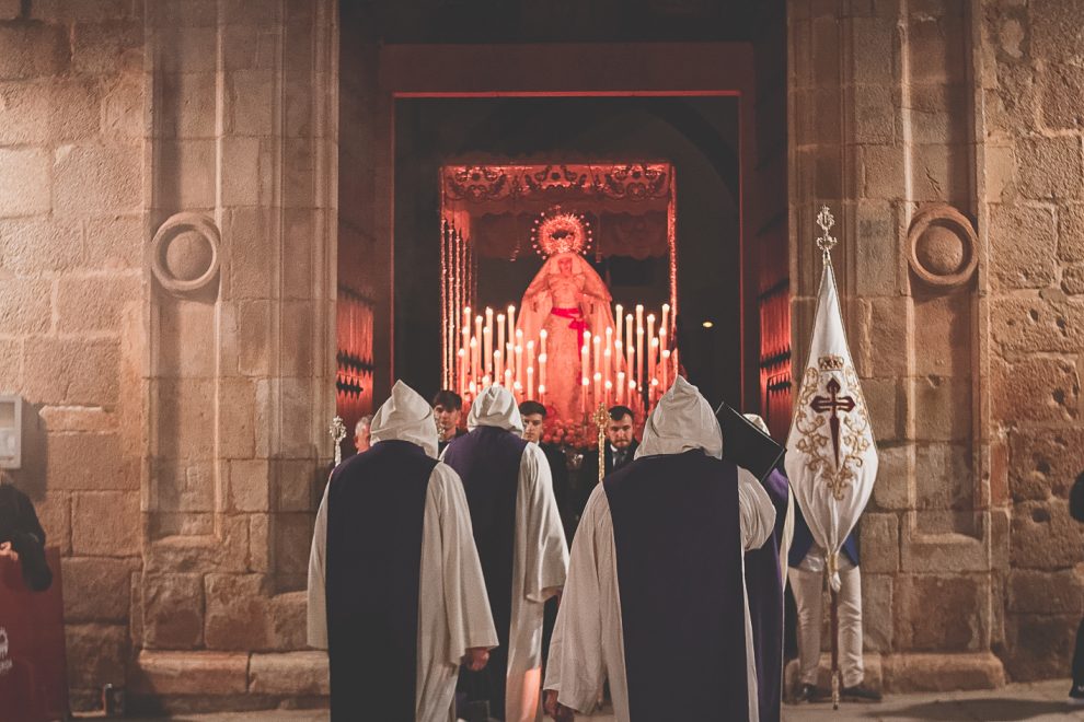 «Procesión pequeña, sin alboroto ni parafernalia, desnuda de cualquier impostura: auténticamente emeritense. Así es como el Stmo. Cristo del Calvario se presenta cada madrugada del Viernes Santo en Mérida. Se respira devoción, sentimiento; se siente el silencio, se oyen los latidos de cada nazareno y cada costalero que se abandona por unas horas a la oración y la meditación.»